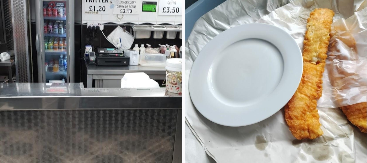 Really good chippy, 3 cod and chips, with gravy, mushy peas and a can of coke came to £22. All was very tasty, and the service was brilliant!