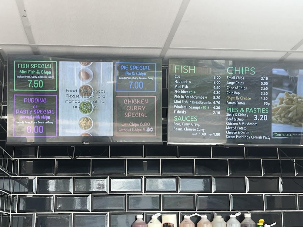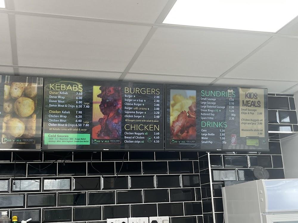 Crewe, with its industrial roots, presents a charming backdrop for Cod N All Fish & Chip Shop. Positioned conveniently on Underwood Lane, this restaurant attracts locals and tourists alike seeking authentic British fare. Its wheelchair-accessible seating and toilet facilities ensure comfort for all patrons. With street and parking lot options available, access is hassle-free. Considering it’s open daily, Cod N All shines busiest during dinner hours, especially on Fridays at 6 PM, where you’ll find the crowd almost at full capacity. The locals often recommend visiting during less hectic hours, like 11 AM on weekdays, for a more relaxed dining experience. Whether grabbing a quick lunch or savoring dinner, this place captures the essence of a traditional chippy.